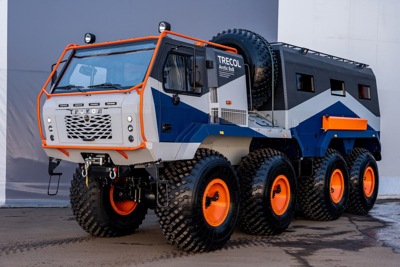 Снегоболотоход ТРЭКОЛ АРКТИКА с колесной формулой 8х8 — инновационная модель в линейке вездеходов ТРЭКОЛ. Первый в мире колесный снегоболотоход с грузоподъемностью 4000 кг. С прицепом масса перевозимого груза составляет 5 500 кг.
